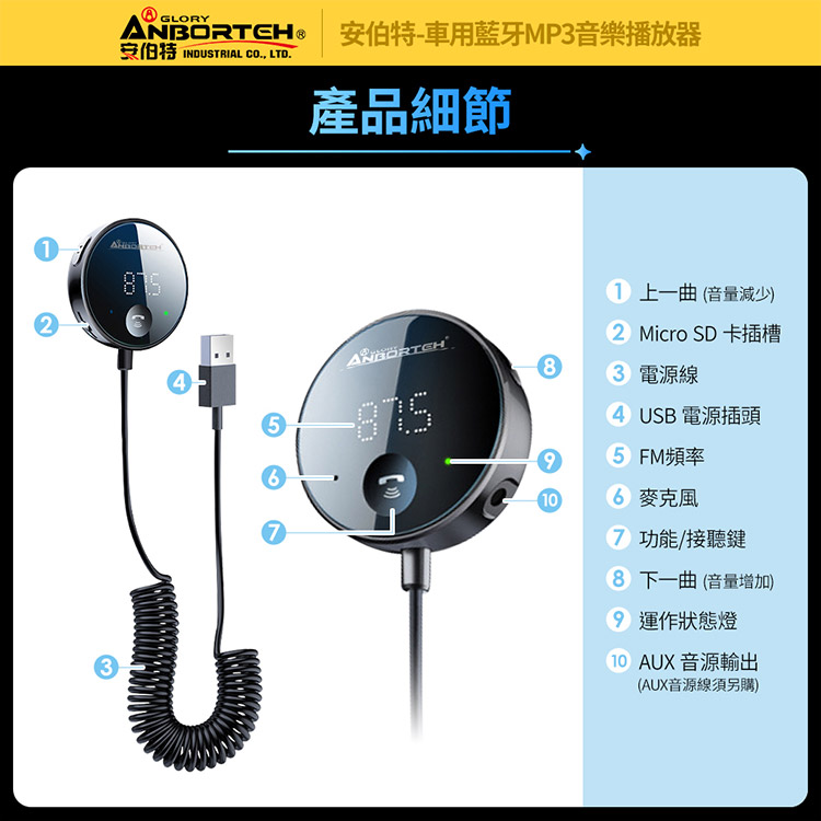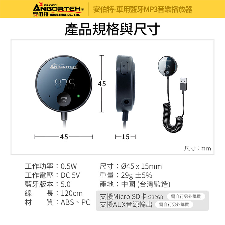 商品品名:【安伯特】車用藍牙MP3音樂播放器