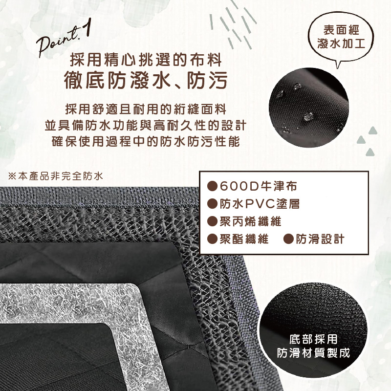 🔒 防滑底部設計底部特殊防滑顆粒,可有效防止寵物在車上移動時墊子滑動,提升乘坐穩定性。