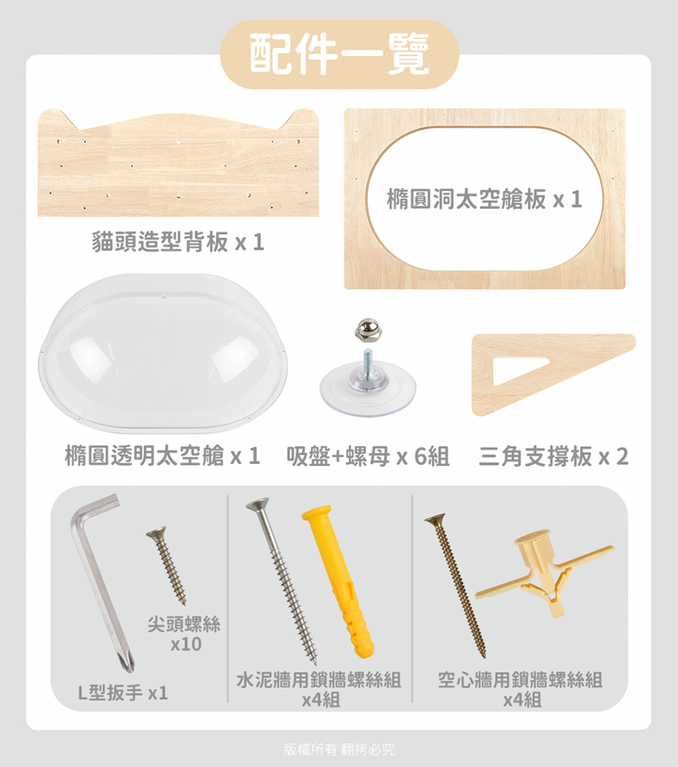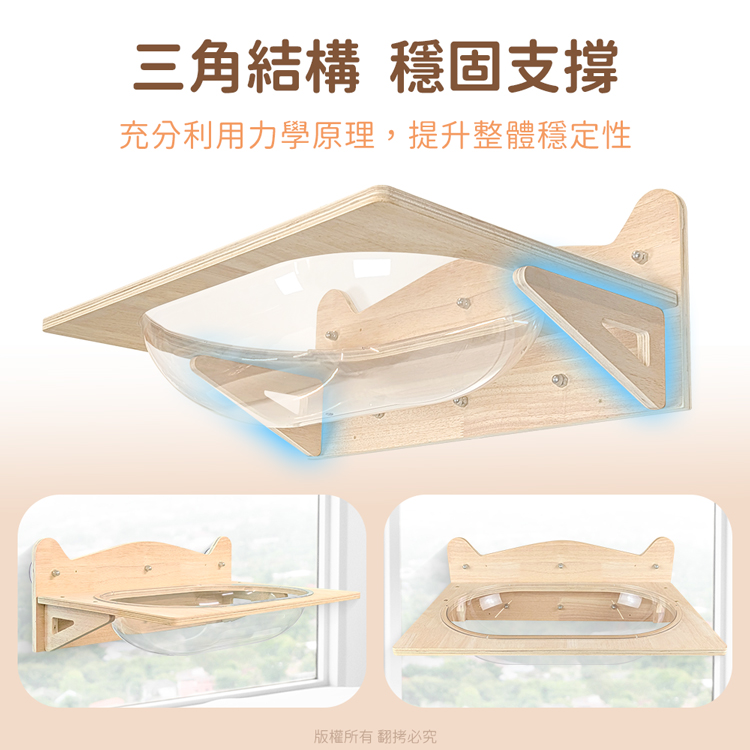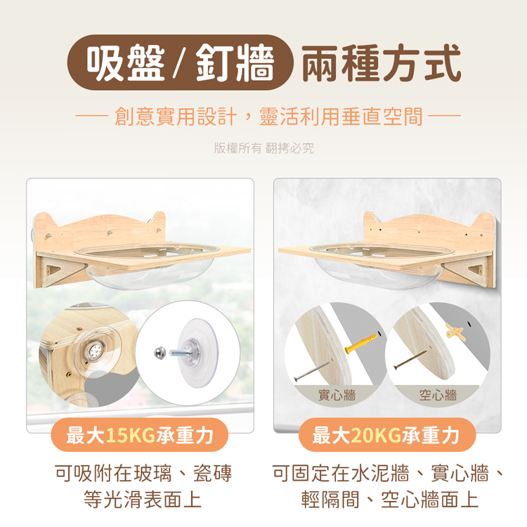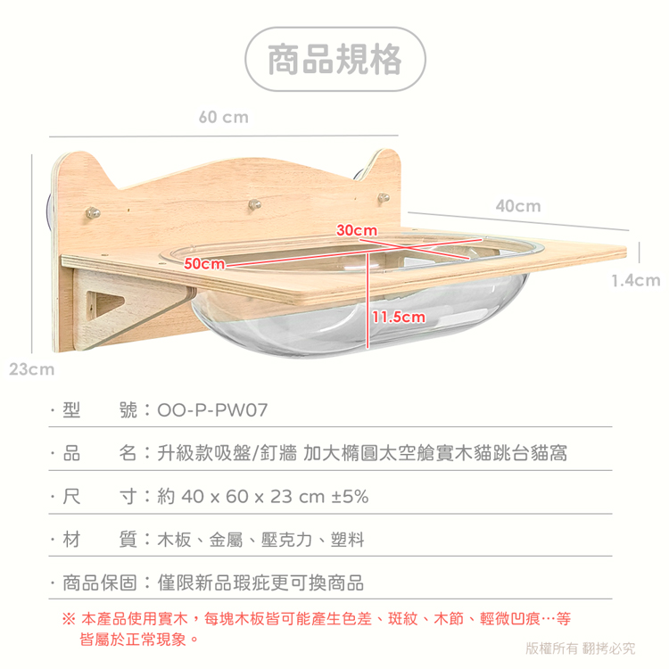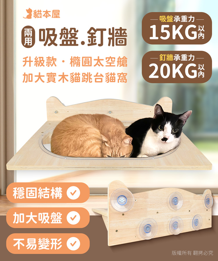 .品 名:貓本屋 吸盤/釘牆兩用 升級款加大橢圓太空艙實木貓跳台貓窩
