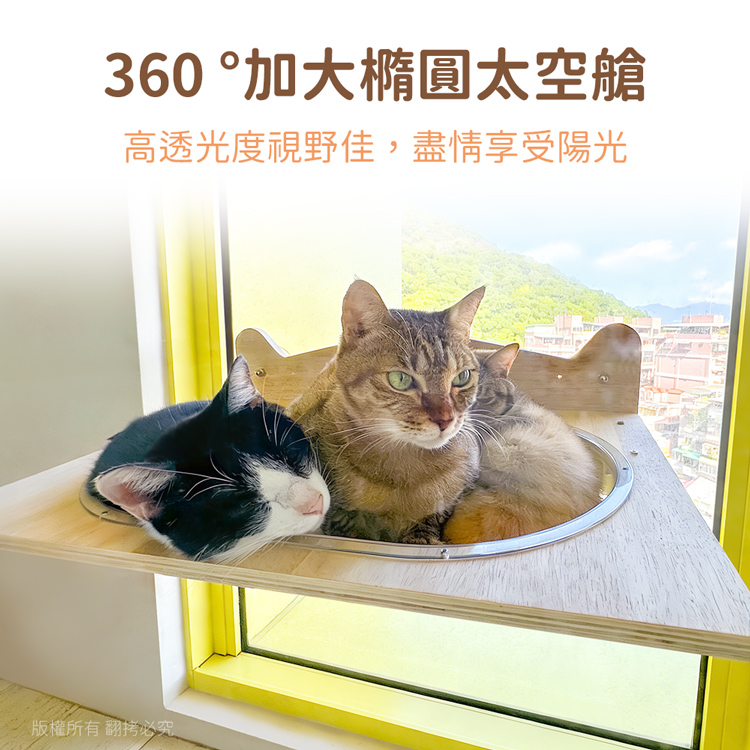 360°加大橢圓透明太空艙窗設計,還能提供貓咪一個高處的觀景位置,