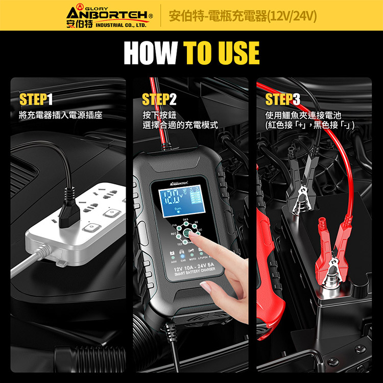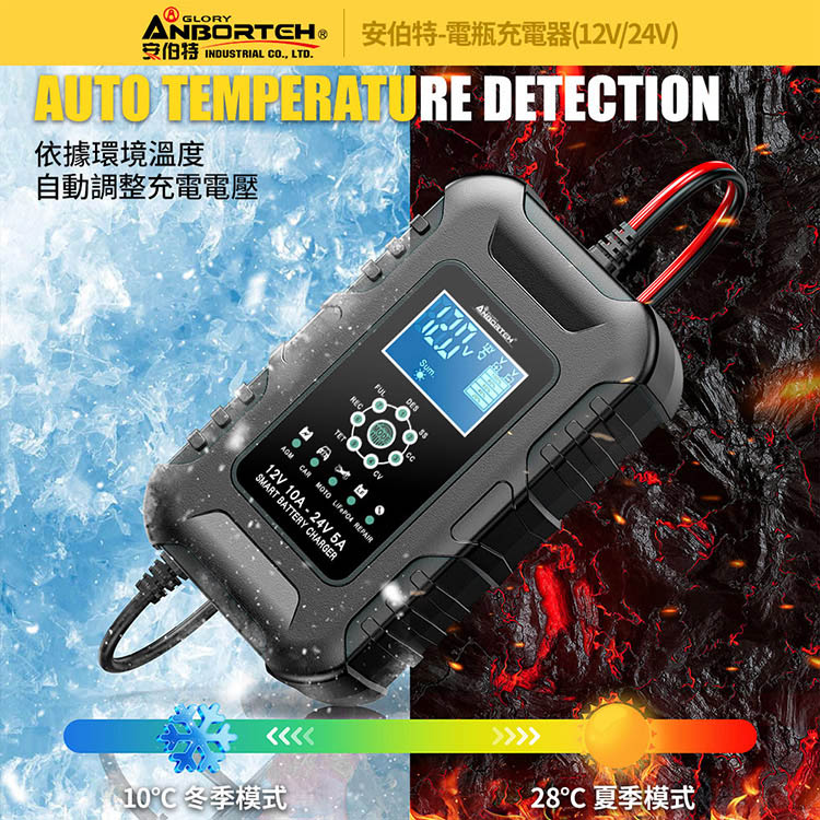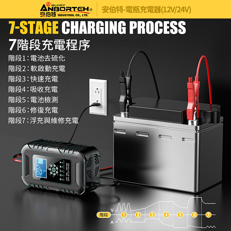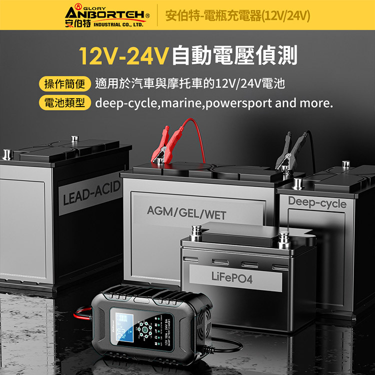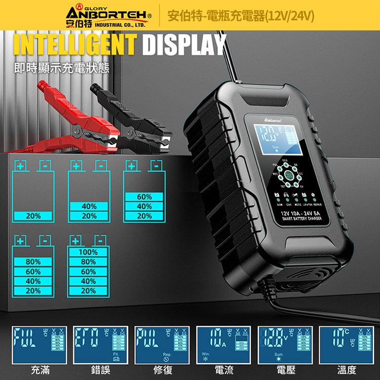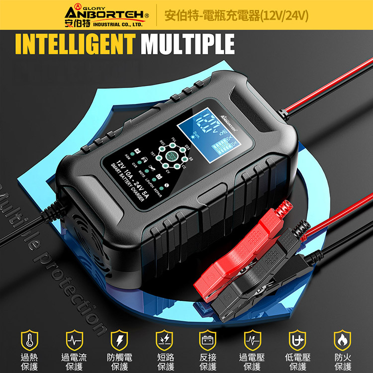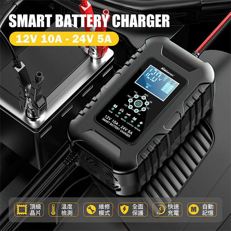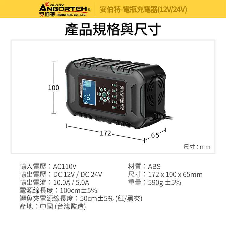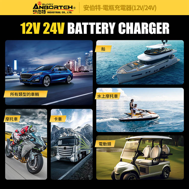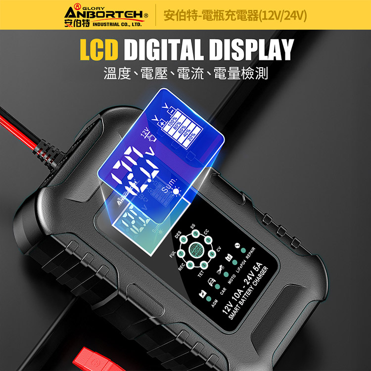 商品品名:【安伯特】電瓶充電器(12V/24V)黑色款