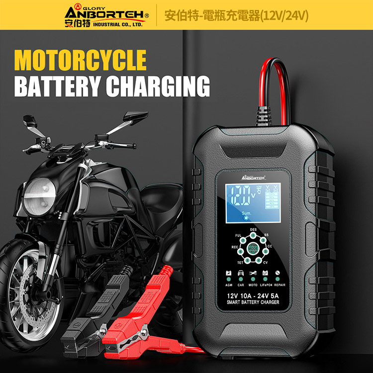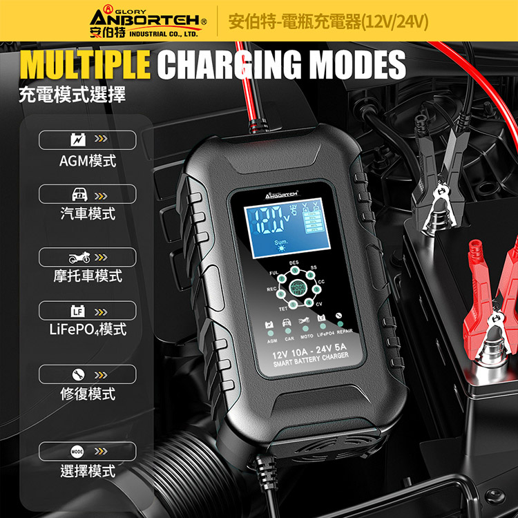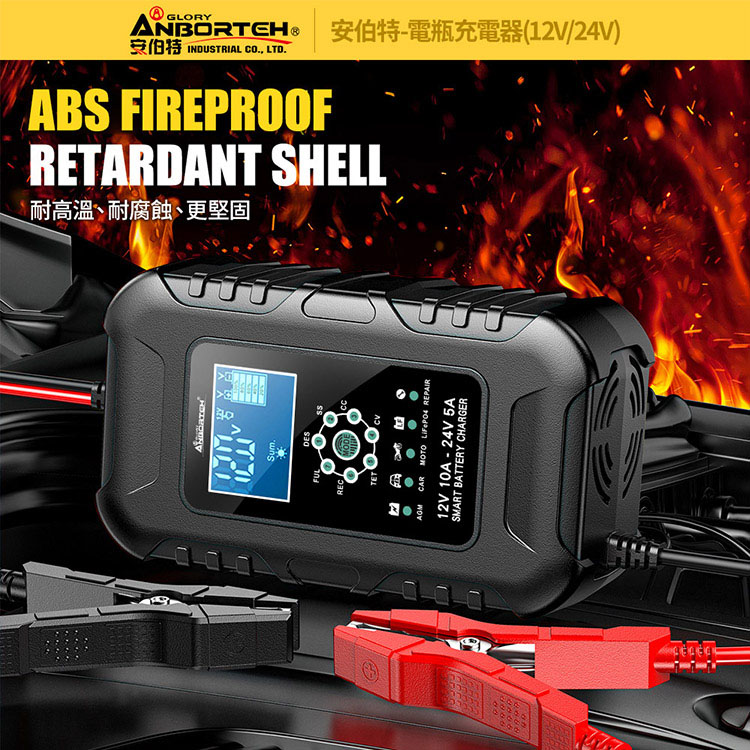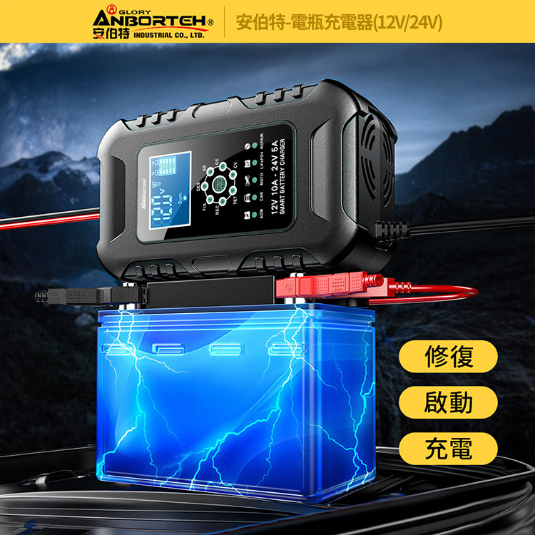 【安伯特】電瓶充電器(12V/24V)黑色款(一年保固)汽車/機車/小貨車/電瓶修復