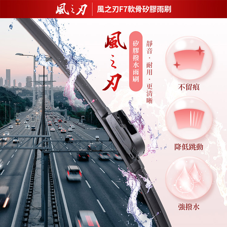 【風之刃】F7軟骨矽膠雨刷-專用款轉接頭F4+雨刷(1組)