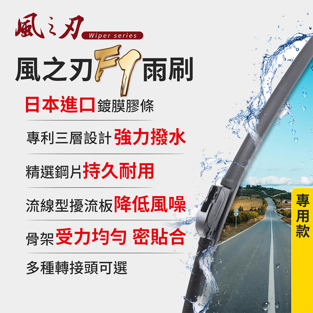 【風之刃】F7軟骨矽膠雨刷-專用款轉接頭F12+雨刷(1組)