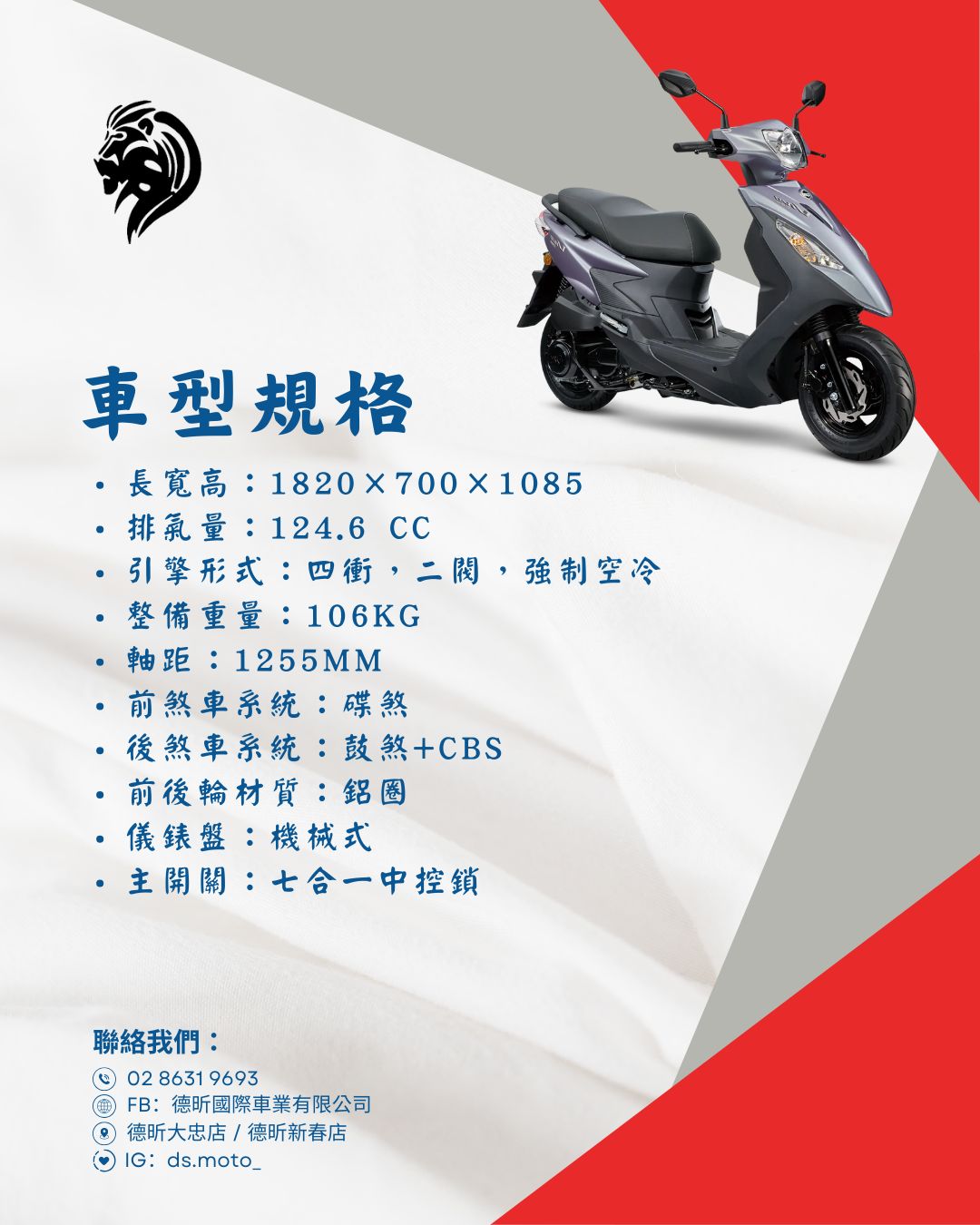 ★ 專業機車托運免運費*外島除外*新竹(含)以北會約時間送到府以南會寄託運到附近車行或者到府取車宜蘭花蓮台東地區和較偏遠地區 會寄託運到附近車行取車◎ 售價*不含*領牌規費和強制險費用!!◎ 訂購後將有專人致電確認領牌事項和送車相關問題!◎ 現在皆無紙化,無紙本說明書/保固書-車廂內有一個QR扣掃進去就是唷!◎ 訂購前,請仔細閱讀購車注意事項,以確保權益!◎ 新機車屬於財產登記制,一經領牌,不在是新車,皆無法退換貨, 若欲退貨.須負擔車輛折舊40%損失,並請您確保機車原狀(無使用過狀態) 若有缺配件/使用過,將依缺件商品價格/使用程度折損收取費用.