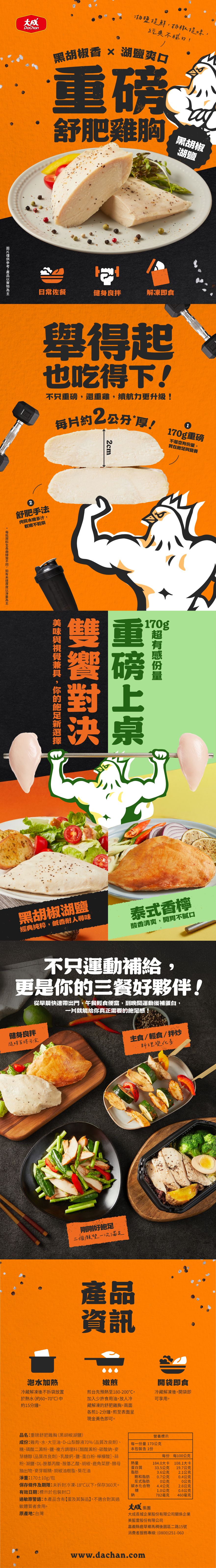 【DaChanFood】Black Pepper Lake Salt - Heavyweight Sous-Fat Chicken Breast (170g/pack)