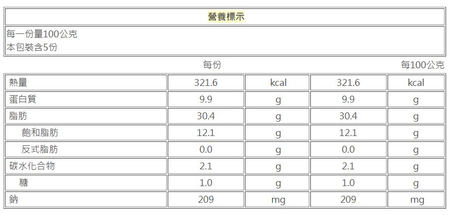 豬五花肉、梅干菜【芥菜、鹽】、水、豬油(台灣)、蒜仁、特砂、食鹽、二砂、淡色醬油【非基因改造脫脂黃豆片胺基酸液、釀造生醬油(水、非基因改造脫脂黄豆片、小麥、食鹽)、水、轉化液糖(蔗糖、水)、食鹽、防腐劑(苯甲酸鈉)、DL-蘋果酸、酵母抽出物、紅麴色素(含酒精)、甜味劑[甘草萃(含糊精、檸檬酸鈉)] 】、洋蔥、老薑、味鮮【L-麩酸鈉、琥珀酸二鈉、食鹽、5'-鳥嘌呤核苷磷酸二鈉、5'-次黃嘌呤核苷磷酸二鈉、胺基乙酸、DL-胺基丙酸】、桂枝、味精、鮮雞風味粉【食鹽、L-麩酸鈉、麥芽糊精、酵母抽出物、砂糖、水解植物大豆蛋白粉、洋蔥粉、香料】、白胡椒粉、小蘇打粉、肉味風味醬【麥芽糊精、D-山梨醇液70%(甜味劑)、水解大豆蛋白調味粉[氨基酸(大豆水解蛋白)、鹽]、酵母抽出物、水、乳酸、脂肪酸甘油酯、5'-鳥嘌呤核苷磷酸二鈉、5'-次黃嘌呤核苷磷酸二鈉、香料、焦糖色素、砂糖、食鹽】、滷味香辛料【麥芽糊精、八角粉、花椒粉、植物蛋白(大豆水解蛋白、糊精、食鹽、L-麩酸鈉)、山奈粉、香料】、油桂末、木瓜酵素【碳酸氫鈉、木瓜酵素[麥芽糊精、木瓜酵素、偏亞硫酸氫鈉(漂白劑)]、食鹽】、甘靈B【檸檬酸鈉、乳糖、甘草酸鈉(甜味劑)】、桂皮、八角、良薑、陳皮、水性辣椒精【辣椒、單及雙脂肪酸甘油二乙醯酒石酸酯、卵磷脂、大豆油】、乾辣椒、砂仁、白果、月桂葉、老抽【糖、水、焦糖色素、食鹽、脫脂大豆片(非基因改造)、小麥】 過敏源:本產品含有大豆、牛奶類、含麩質之穀物及其製品之成分,不適合對其過敏體質者食用。