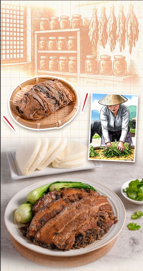 嚴選層次分明的優質豬五花經煎煮逼出油脂香氣,再與梅干菜蒸煮入味,肉質軟嫩鹹香入味,無論是配白飯或刈包都超級美味!