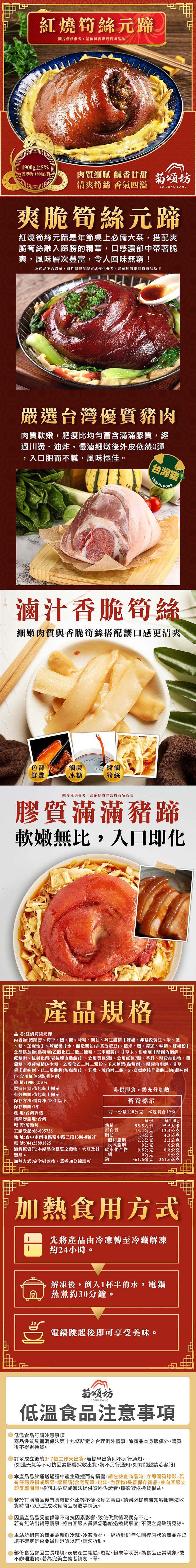 嚴選台灣優質豬蹄 富含滿滿膠質冰糖滷製 焦糖色澤外皮Q彈 肉質軟嫩紅燒蹄膀搭配清爽筍絲年菜必備經典美食