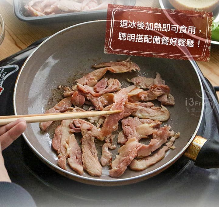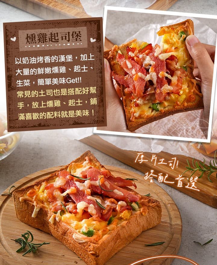優鮮雞後腿肉部位,以低溫醃製鹹香入味,再以德國進口櫸木以直火高溫蒸氣煙燻工法,使櫸木的特殊香氣完整依附於肉片上,煙燻香味濃郁,肉質鮮嫩多汁不乾不柴,是為佐餐搭配的優質良伴!
