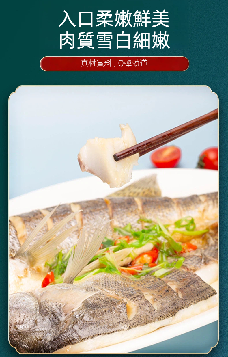 來自純淨海域的海水鱸魚,不同於一般淡水鱸魚,肉質更加Q彈細緻、無土味、腥味低,適合全家大小食用。