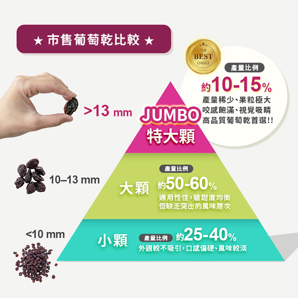◎ 來自陽光的美味,天然日曬而成◎ 100%純天然,無人工色素與其他添加物◎ 無額外加糖,葡萄本身的自然甜◎ 不含脂肪與膽固醇◎ 鉀與纖維的豐富◎ 家裡必備天然的『好零食』