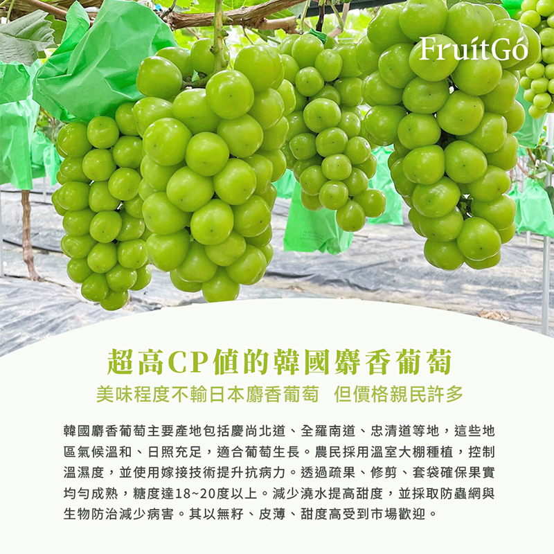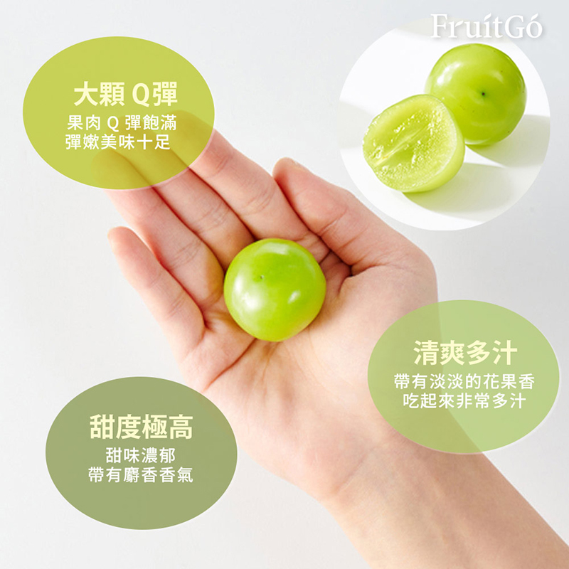 顆顆完美亮眼、Q彈飽滿有如翡翠寶石般美麗的外觀,果肉「Q彈」,顆顆皆飽滿,跟歐美地區綠無籽講求「脆口」不同。麝香葡萄甜度高達20度,酸度零。果汁豐郁芳香,果皮無澀,滿滿夢幻幸褔「麝香」風味。美味程度不輸日本麝香葡萄,但價格親民許多。適合想要天天吃頂級葡萄的愛好者!香氣十足,入口令人著迷的麝香麝香葡萄香味獨特,帶有濃郁的荔枝香,因此種植時常招引蜜蜂前來。洗淨後可帶皮吃,飽滿無籽,整顆直接享用。吃過後令人難以忘懷!