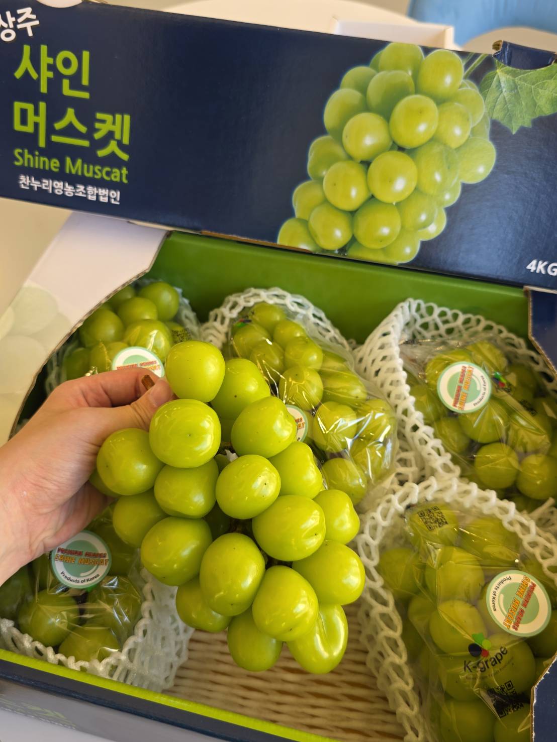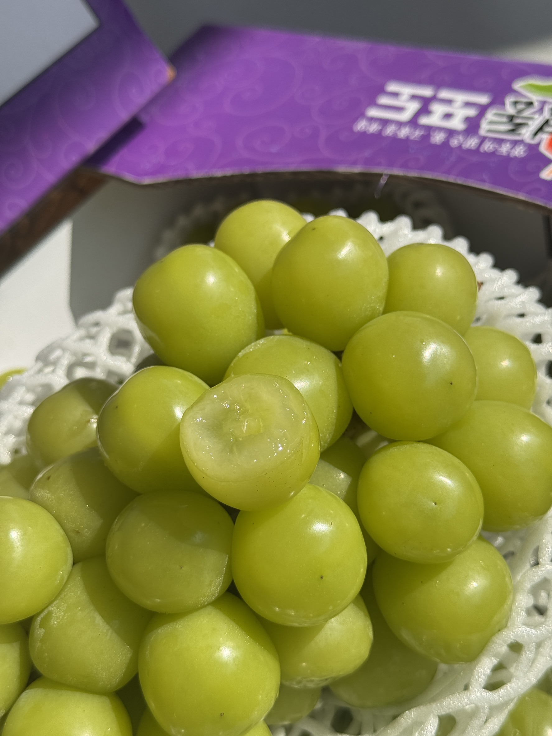 ✈️ 韓國進口,新鮮直達,品質看得見🍭 糖度高、甜美爽口,一口爆汁超療癒💚 翠綠晶瑩外觀,每顆都飽滿圓潤,顏值超吸睛🍇 果肉Q彈有蜜香,像在吃QQ水果軟糖🎁 無籽設計超方便,大人小孩都愛吃