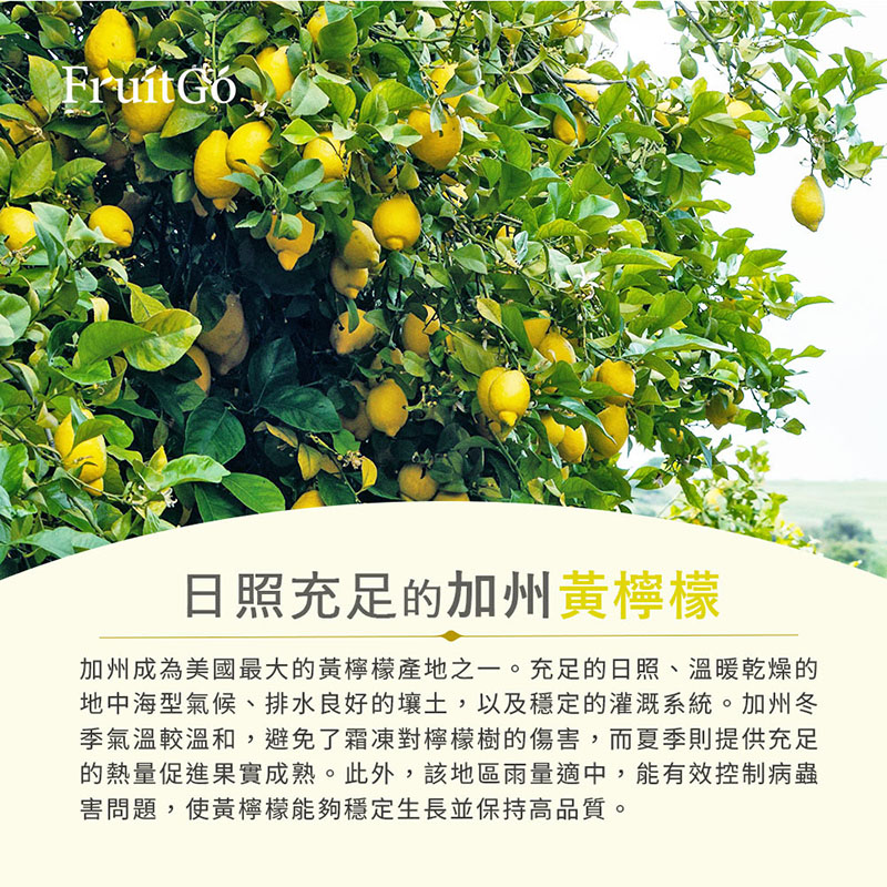 檸檬講求的是「香氣」美國加州出產的Eureka黃檸檬,檸檬在樹上全熟轉金黃後才採摘,風味上比起綠檸檬更加甘甜,檸檬香氣足!檸檬講求的是香氣及酸味,歐美國家習慣直接食用,會帶些甘甜滋味。因黃檸檬香氣足,也適合加入飲品、甜品中。