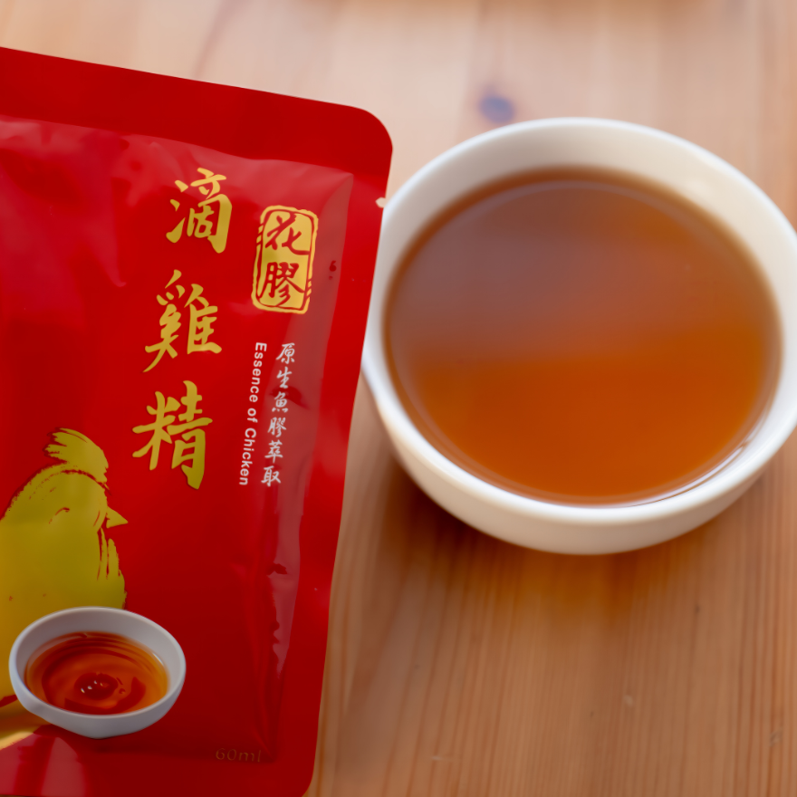 膠貴妃滴雞精每100ml 含有 3330毫克膠原蛋白與346.9毫克支鏈胺基酸。