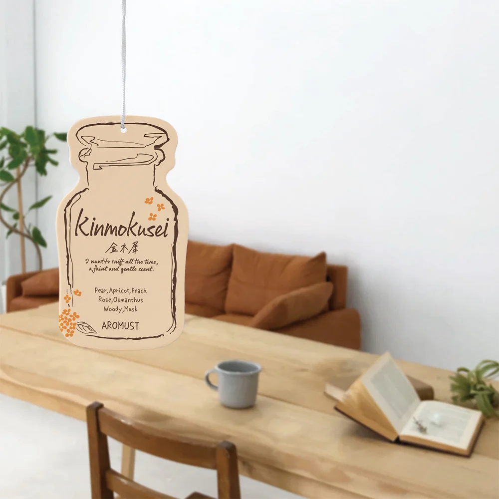 讓桂花的柔香住進家裡——把金木犀香氛片掛在玄關、衣櫥或床邊,香氣便會穩定地在空氣裡鋪開:梨與蜜桃先把空間點亮,金木犀(桂花)緩緩展開;甜香拿捏得剛好、層次清楚,尾韻由木質×麝香輕輕收束,乾淨不黏膩、久嗅也不覺負擔。以香氛瓶為靈感的極簡設計,一掛即有型,為日常添入一絲小小奢華與安穩,讓步調自然放慢、幸福感悄然升溫。