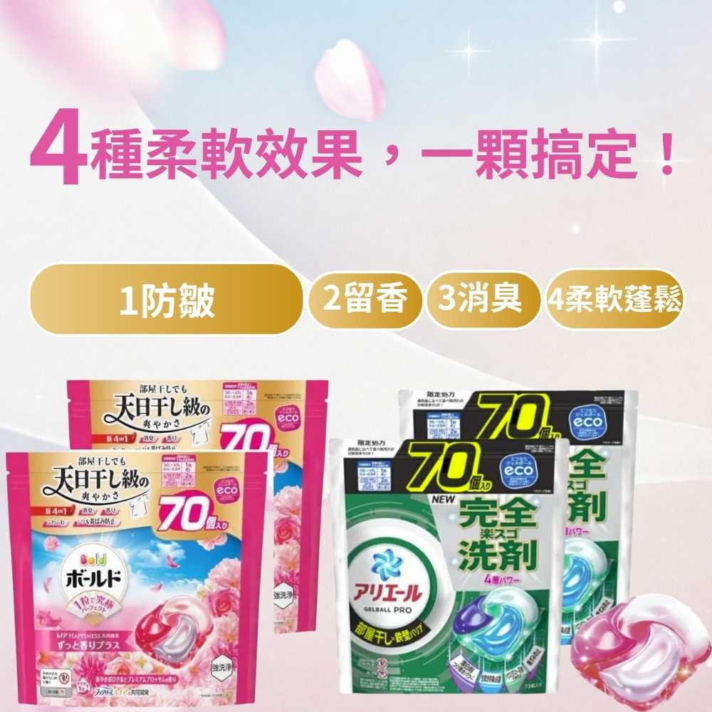 日本P&G Bold 洗衣球,將洗淨、柔軟、香氛與除臭4大效果融合於一顆,