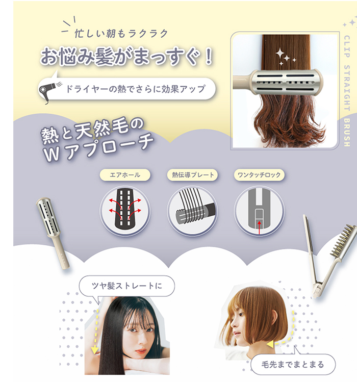 使用方法:1.夾住適量頭髮。 2.吹風機溫風由上往下吹整即可。