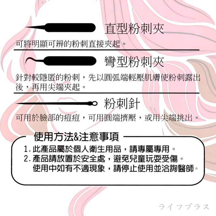 直型粉刺夾可將明顯可辨的粉刺直接夾起