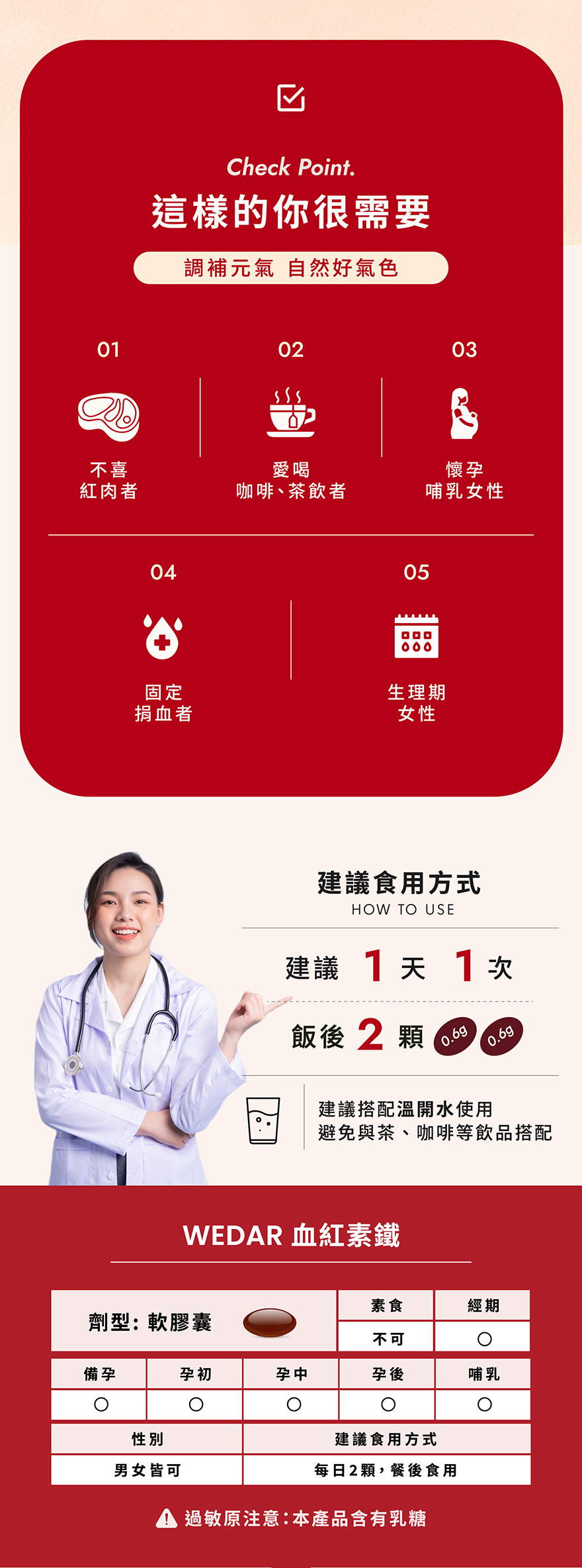 [WEDAR 薇達] 血紅素鐵 (30顆/盒)