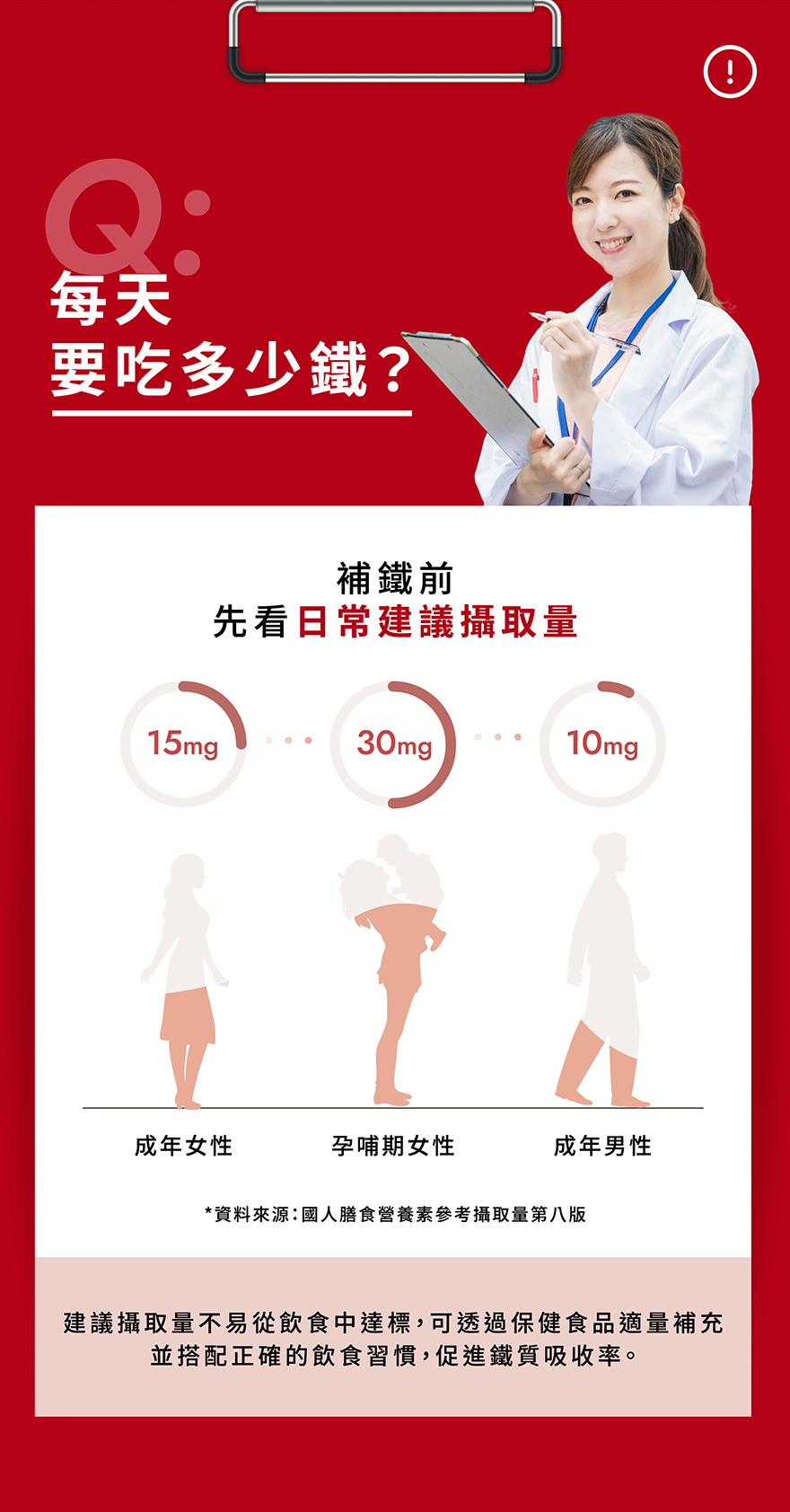 臻選血紅素鐵,動物性來源、吸收率高。丁烯二酸亞鐵、維生素C、綜合維生素B群、大豆卵磷脂,卓效補鐵更進階。月月守護、懷孕哺乳、日常補充,每日兩顆調補元氣、極緻呵護。