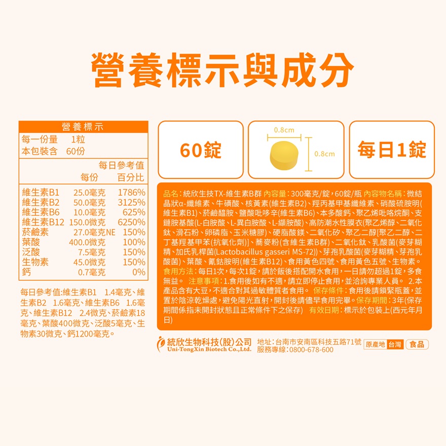[Uni-TongXin] TX Vitamin B Complex (60 Tablets/Bottle) ×4 Bottle