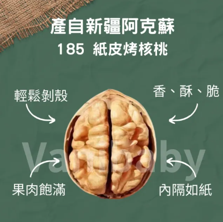新疆紙皮核桃(或稱新疆烤核桃)是新疆地區特產的薄殼核桃,因殼薄易剝、果仁飽滿、經香料烘烤後帶有酥脆口感和特殊香氣而流行
