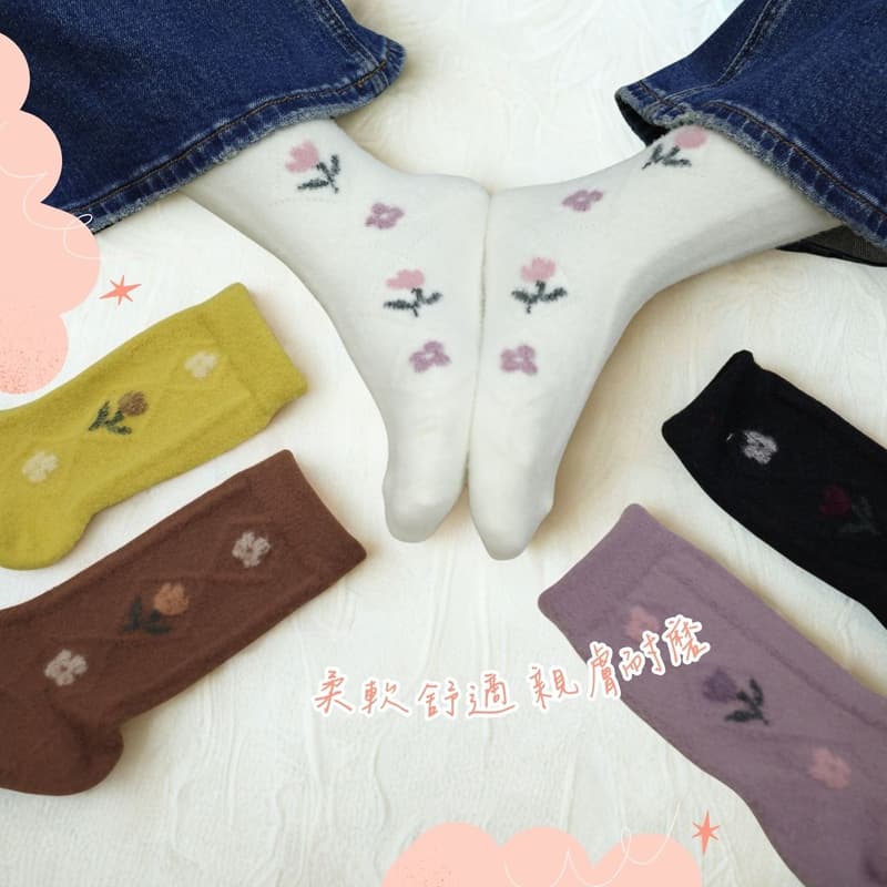 [Kaimi Cotton] Winter Limited Warm Sherpa Fleece Socks – flowers Style – Women’s Cozy Winter Thermal Socks