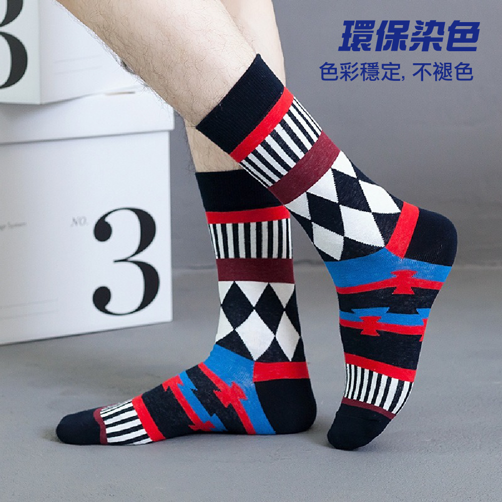 ‧INS風格設計,潮流百搭‧高彈性中筒版型‧舒適親膚面料‧五款圖案隨機組合