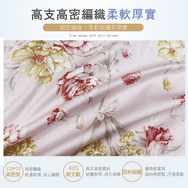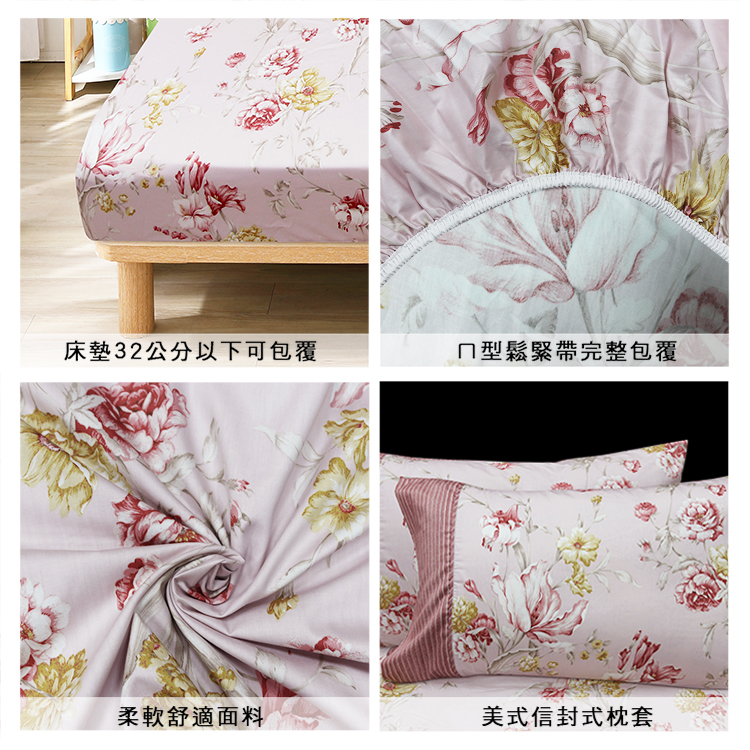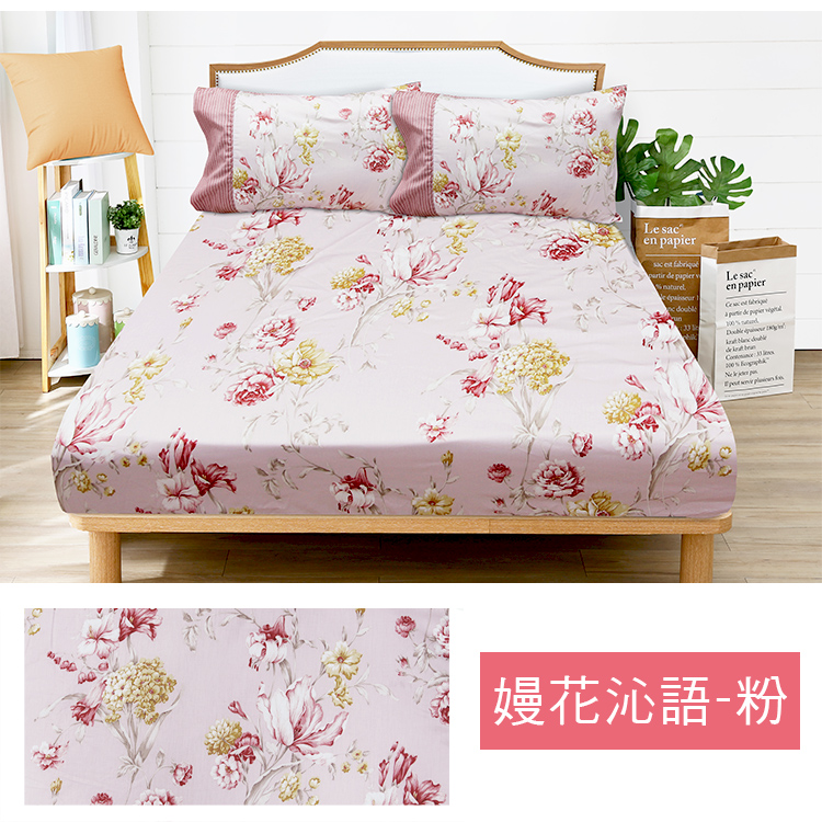 FITNESS 精梳棉雙人特大床包枕套三件組-嫚花沁語-粉