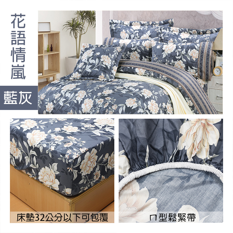 FITNESS 精梳棉雙人四件式被套床包組-藍灰