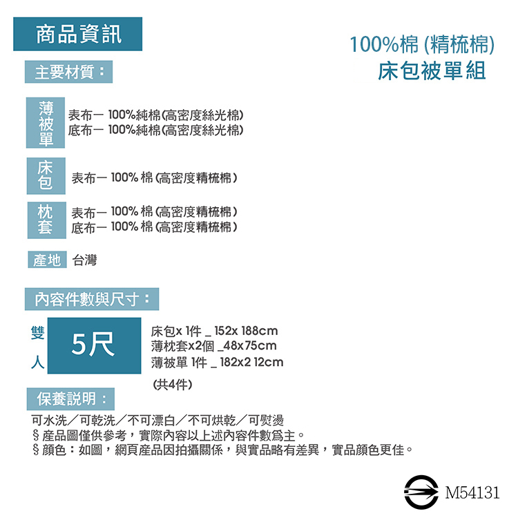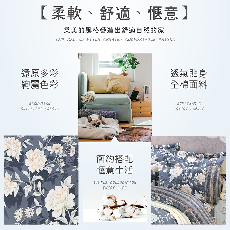 ★材質:【被套】表布-100%棉(高密度精梳棉)、底布-100%棉(高密度精梳棉)【床包】表布-100%棉(高密度精梳棉)【枕套】表布-100%棉(高密度精梳棉)、底布-100%棉(高密度精梳棉)