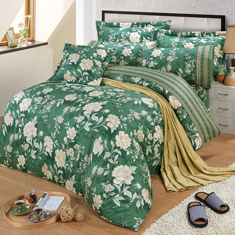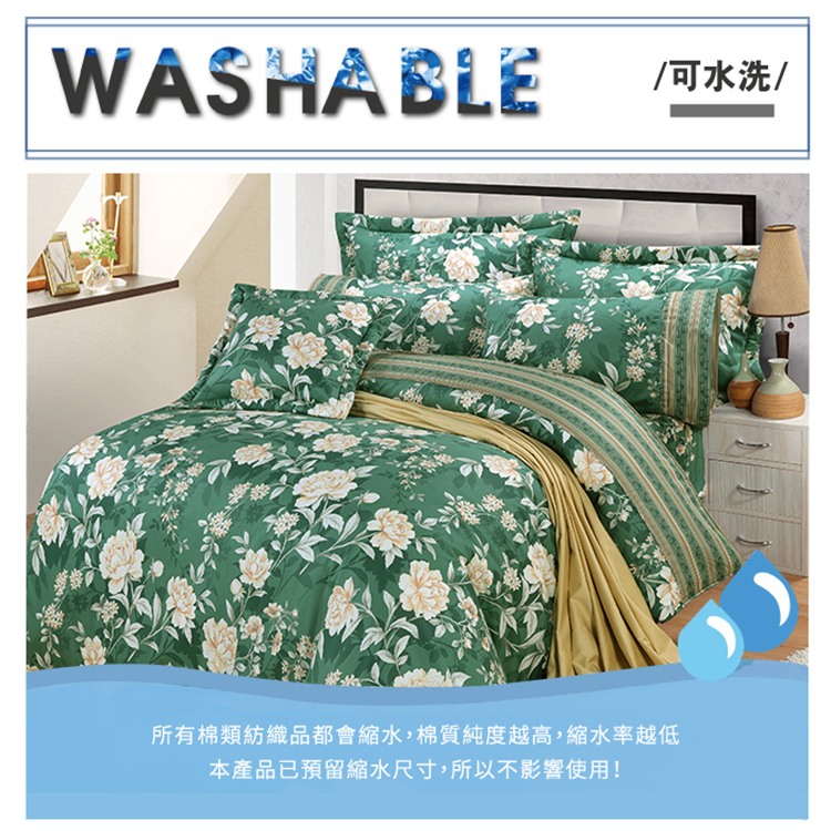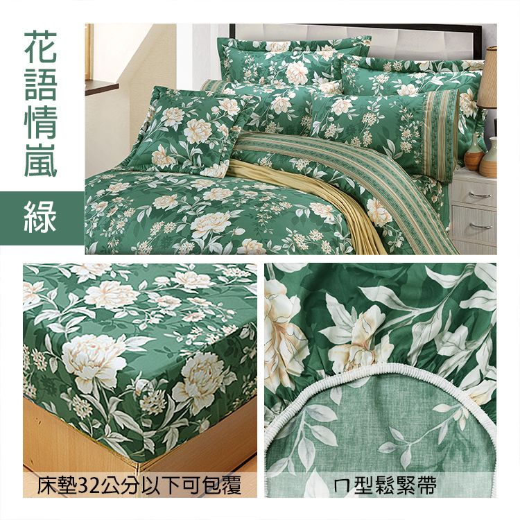 FITNESS 精梳棉雙人四件式被套床包組-花語情嵐-綠