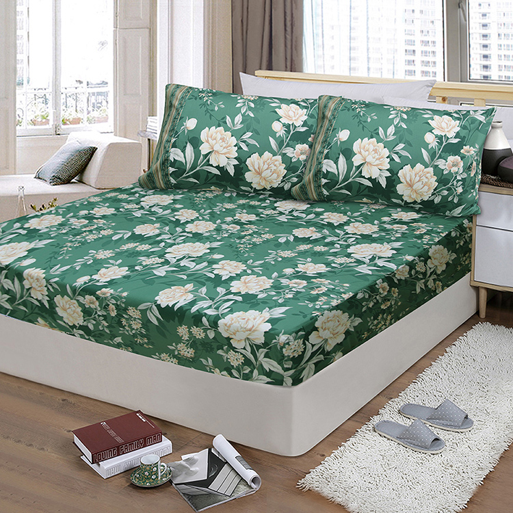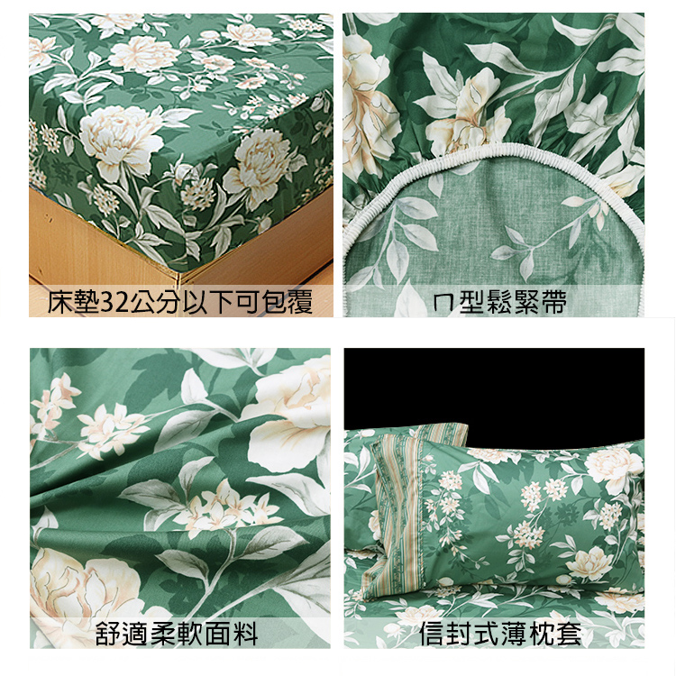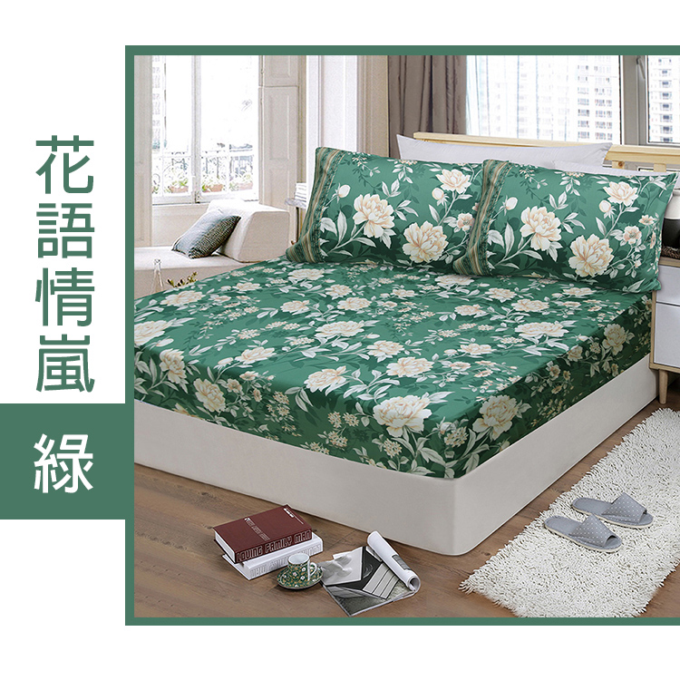 FITNESS 精梳棉雙人床包枕套三件組-花語情嵐-綠