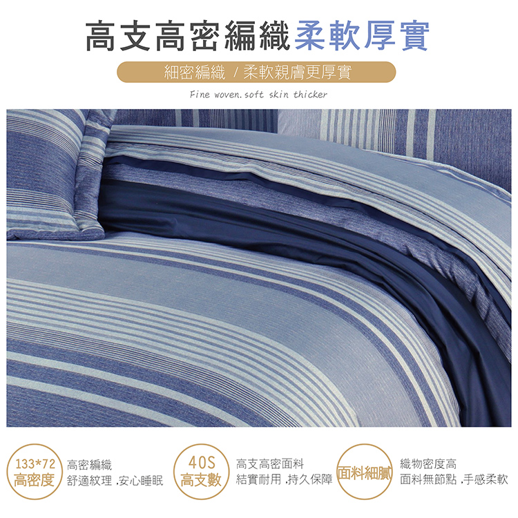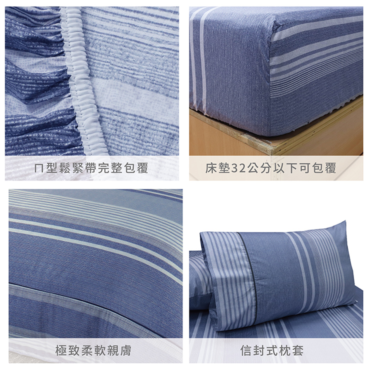 FITNESS 精梳棉雙人床包枕套三件組-安德里-藍