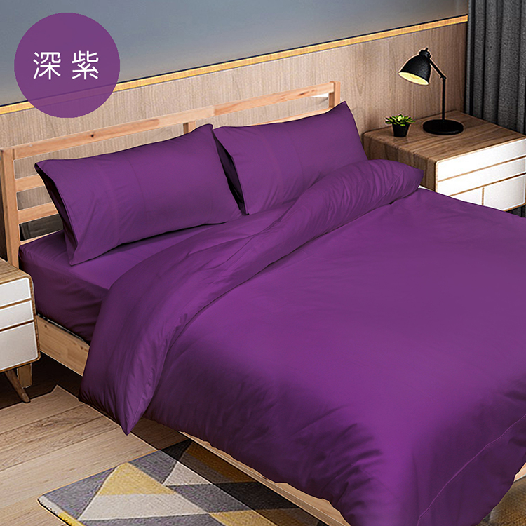 FITNESS 純棉素色單人加大床包枕套組-深紫色