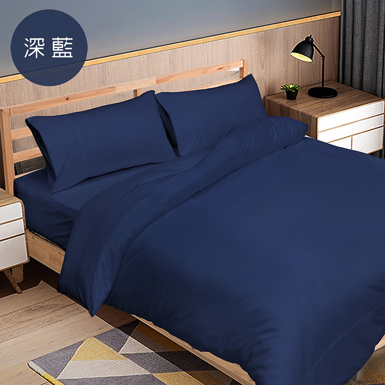 FITNESS 純棉素色雙人床包枕套組-深藍色
