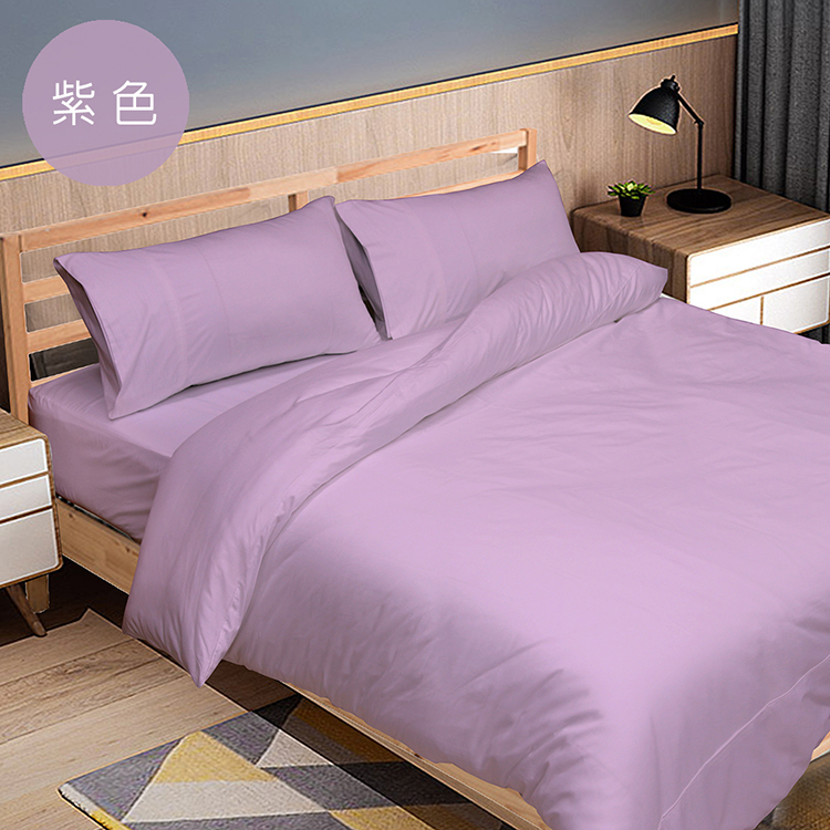 FITNESS 純棉素色雙人加大床包枕套組-紫色