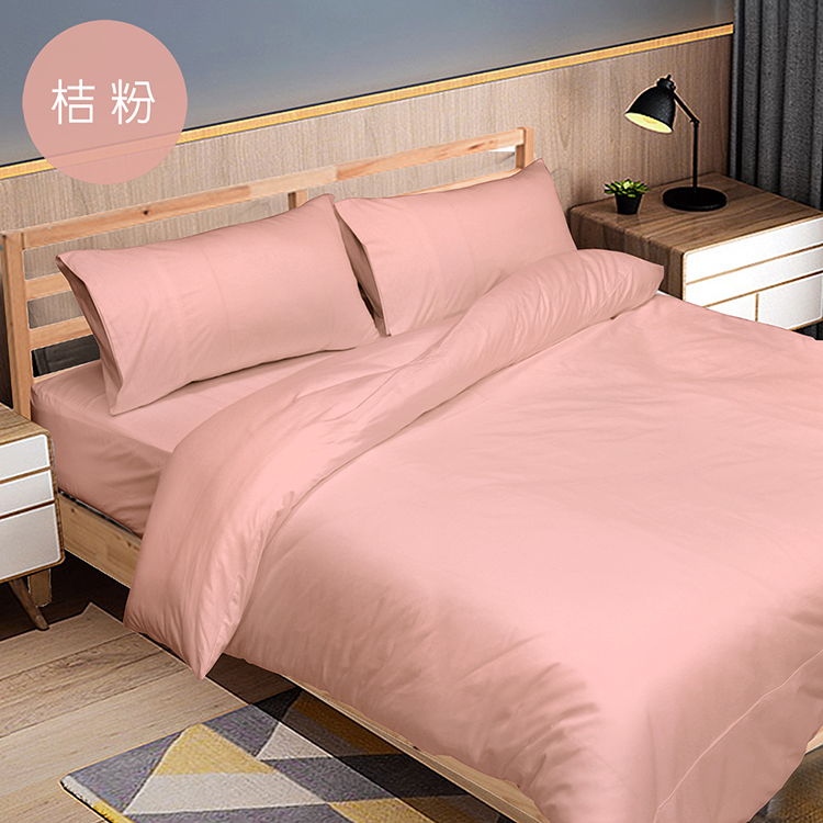 FITNESS 純棉素色雙人加大床包枕套組-桔粉色