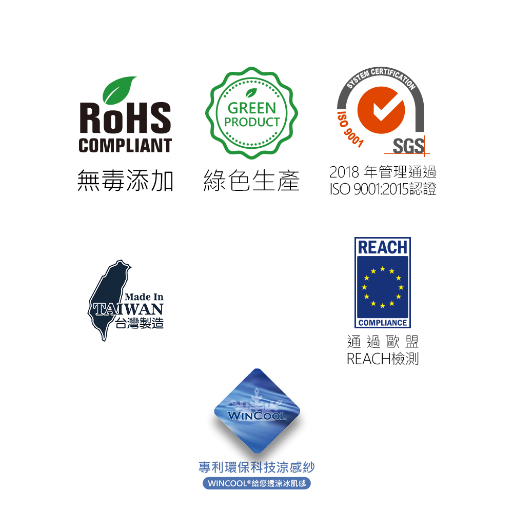 專業級產品,品質保證:生產原料符合歐盟RoHS與REACH規範。通過SGS總檢驗8大類,223個毒物反應全項目符合標準!品質管理通過SGS ISO9001:2015認證,全程台灣製造,安全無虞。