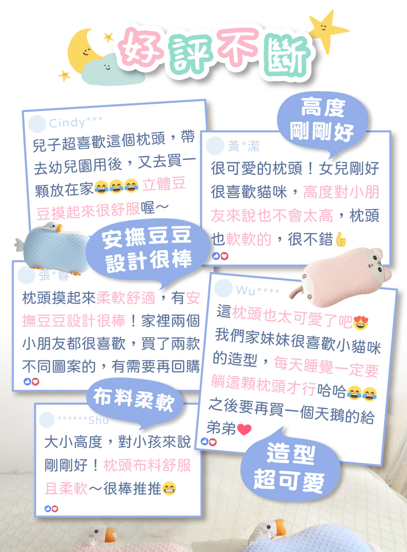 品名:【Pure Sleep 純好眠】動物樂園豆豆枕面料材質:聚酯纖維填充物:記憶棉款式:藍貓/粉貓/藍鵝/粉鵝尺寸:50*30cm(±2cm)產地:中國(台灣監製)進口商:茂榕數位科技有限公司地址:桃園市平鎮區廣東路57巷1號電話:0800-666865※尺寸均為人工測量,若誤差在2CM以內純屬合理範圍,完美主義者請謹慎下單,最終請以實體為準。※商品圖片為實物拍攝,由於螢幕顯示色差、拍攝光線等因素,照片與實物可能略有差異,請以實物為準。※商品尺寸為人工測量,標示僅供參考,若有誤差,請以實物為準。※注意! 枕芯屬於個人衛生用品,經拆封或使用,除瑕疵商品,概不接受退換貨,購買使用前請特別留意!※注意! 以下說明不屬瑕疵範圍:1. 小於1-3cm尺寸測量誤差、些微不對稱2. (1cm極小污點/摺痕/刮痕/螢幕色差等3. 些微脫線/勾針/線頭/味道/五金刮痕4. 人為造成損壞或使用痕跡【退換貨需知】※拆封商品時,為了保障雙方權益,開封時務必錄影留證。※鑑賞期為猶豫期,並非試用期。※提醒您!商品需要全新且包裝完整的情況下,才能辦理退貨退款,避免影響個人權益。