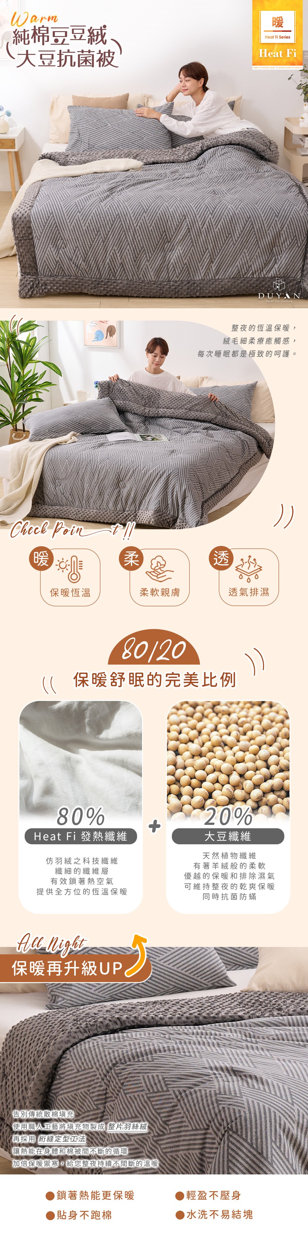 ▪內容物:Heat Fi 純棉豆豆絨大豆抗菌被x1