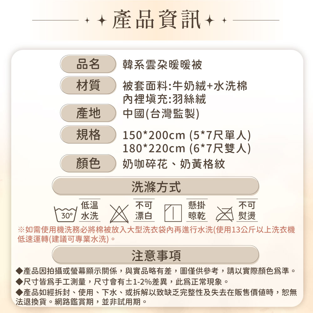 品名:【Pure Sleep 純好眠】韓系雲朵暖暖被-雙人