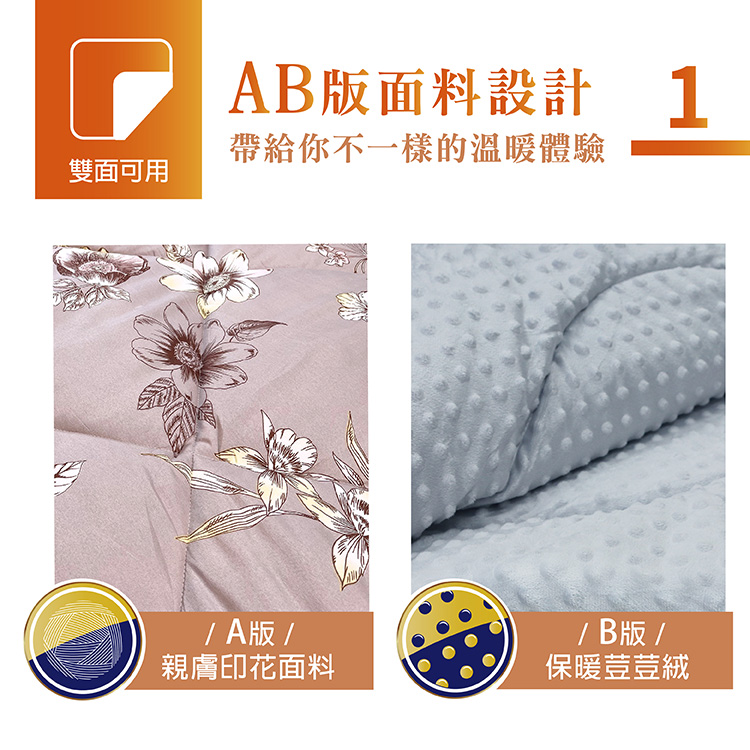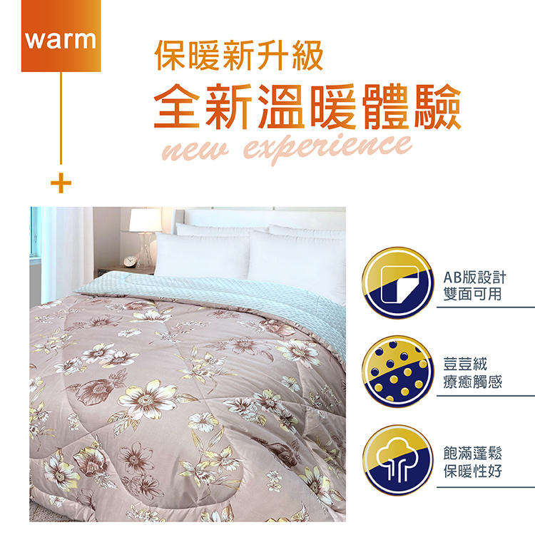 ★保暖新升級 全新溫暖體驗★雙面不同面料觸感設計,兩面皆可用★療癒顆粒觸感,又兼顧保暖★保暖性和蓬鬆性特佳舒服又溫暖★可直接蓋也可以當內被胎使用★台灣製造品質保證