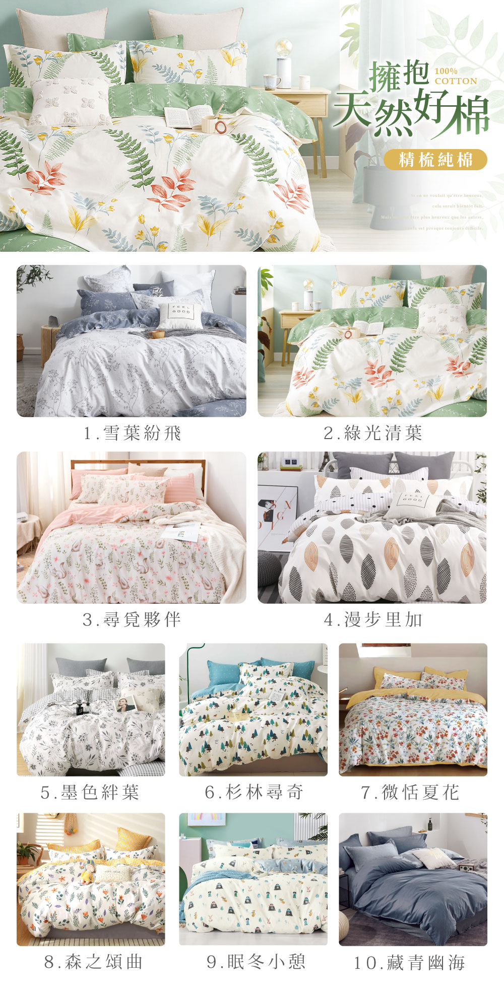 商品說明:▪ 材質: 100%純綿▪ 產地:台灣▪ 床包:採用全包覆式鬆緊帶,可防止床包滑動▪ 枕套:美式信封枕套