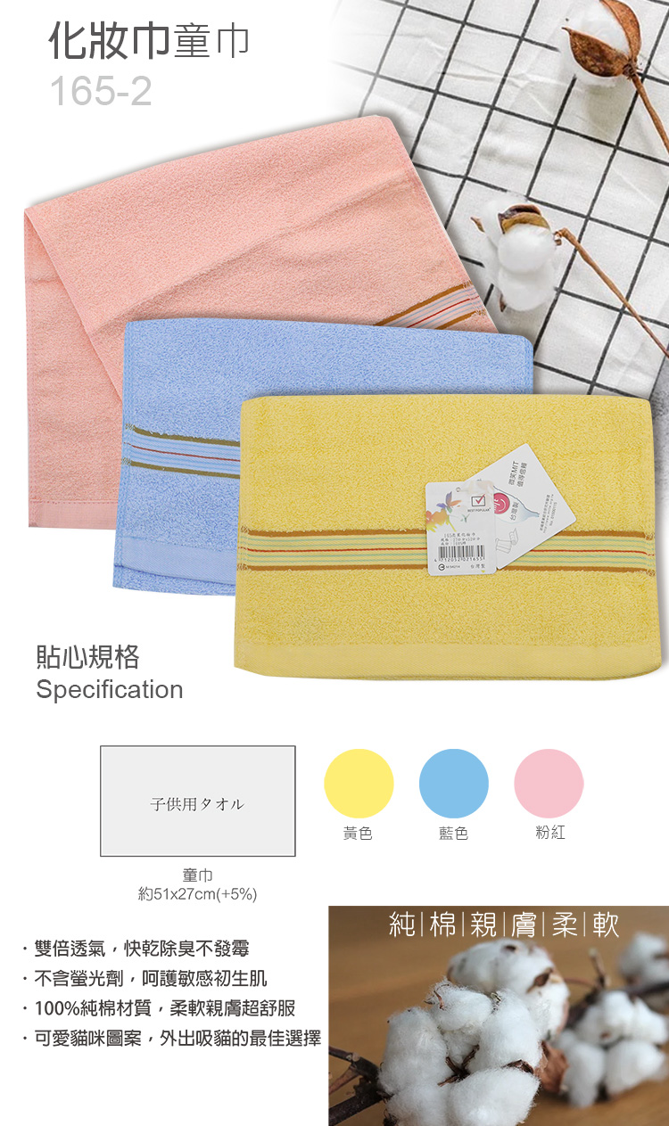 臺灣製造品質安心,100%純棉材質觸感柔細低棉絮,不論是大人還是小寶貝都可以使用,使用起來超細緻,溫和去除污垢跟多餘的油脂。