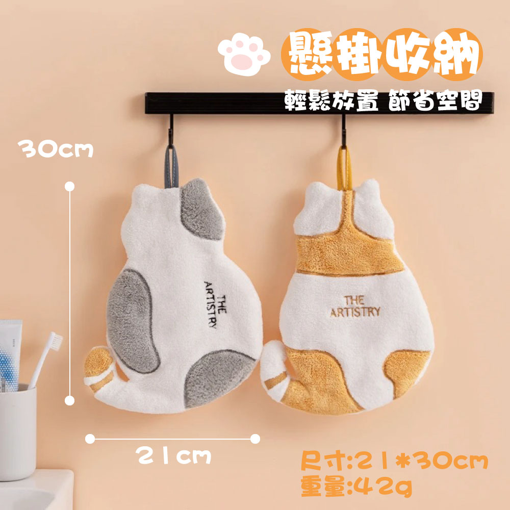 附有掛繩方便收納洗完手就是要把手擦乾當個愛乾淨的乖寶寶商品材質:珊瑚絨商品尺寸:貓21*30cm/鴨子21*37cm商品重量:貓42g/鴨子46g*適合廚房、浴室,擦手擦臉皆可*貼心掛繩設計 可懸掛於廚房或浴室*吸水力強、擦手速乾*珊瑚絨材質 柔軟舒適*療癒系可愛動物 可愛又實用*可水洗 不掉色、不起毛球