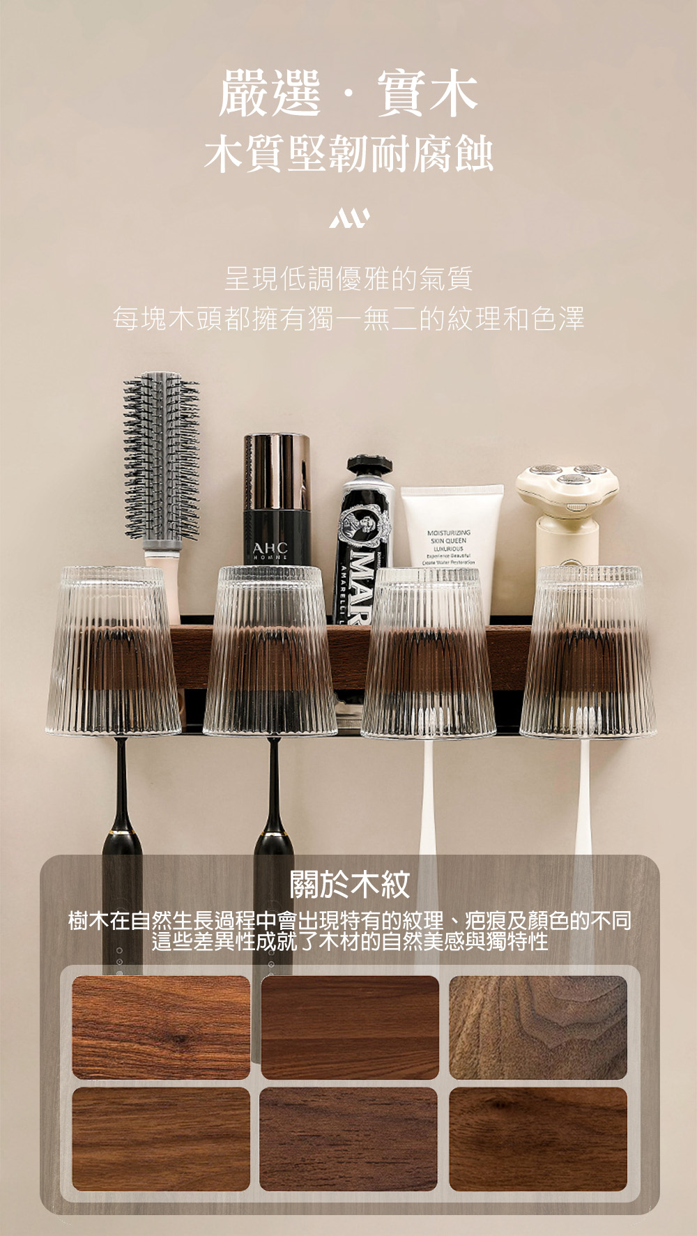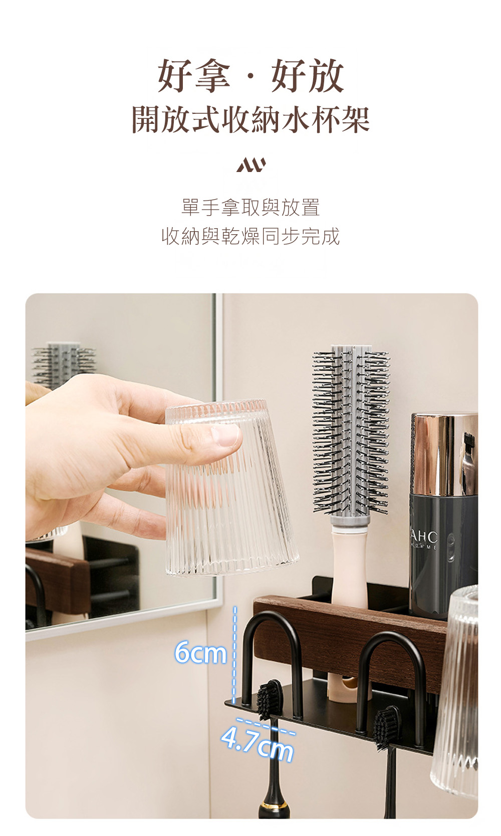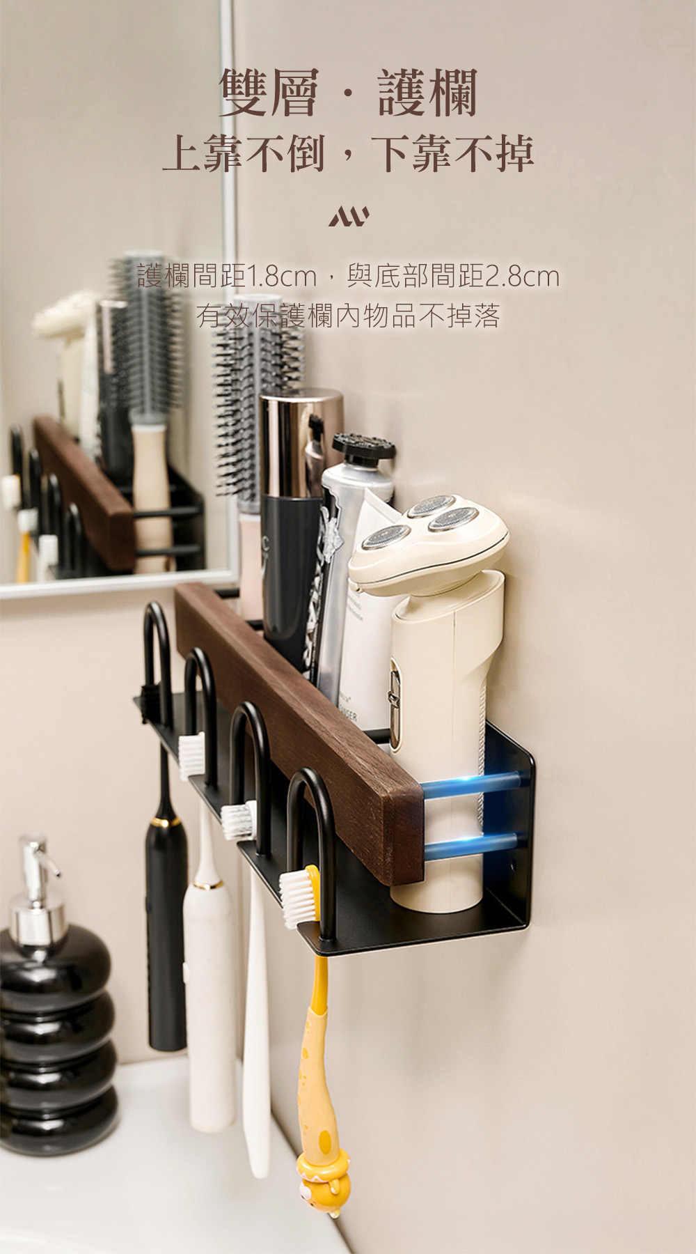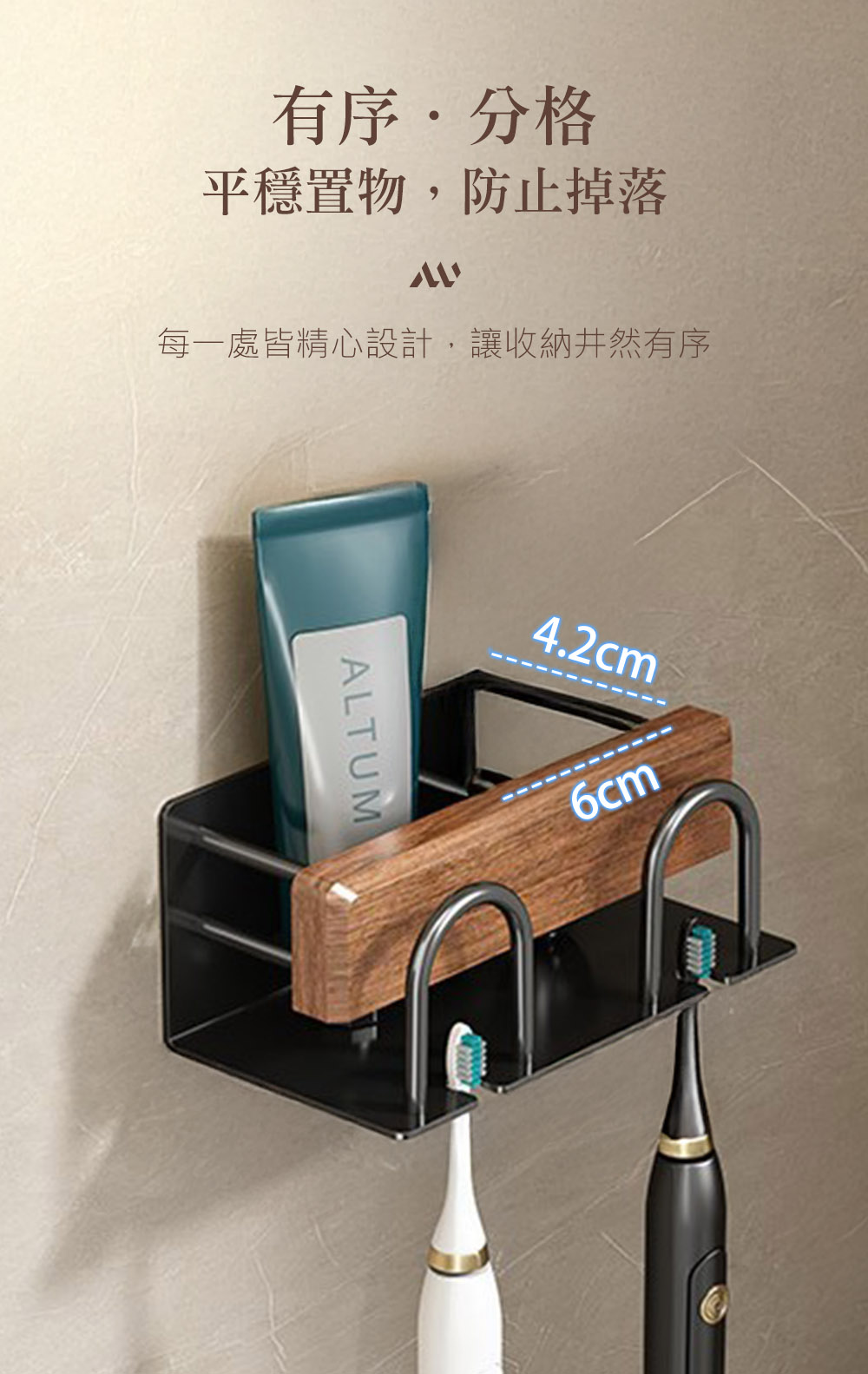 這款牙刷架融合了天然胡桃木與耐用的太空鋁