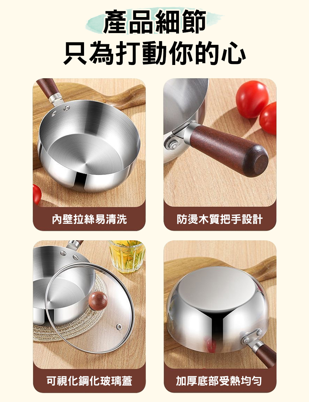 產品名稱:【ENNE】日式桃木316不鏽鋼17cm泡麵鍋(附玻璃蓋)